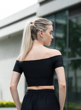 SKADI - OFF SHOULDER SHORT SLEEVE CROP TOP - BLACK