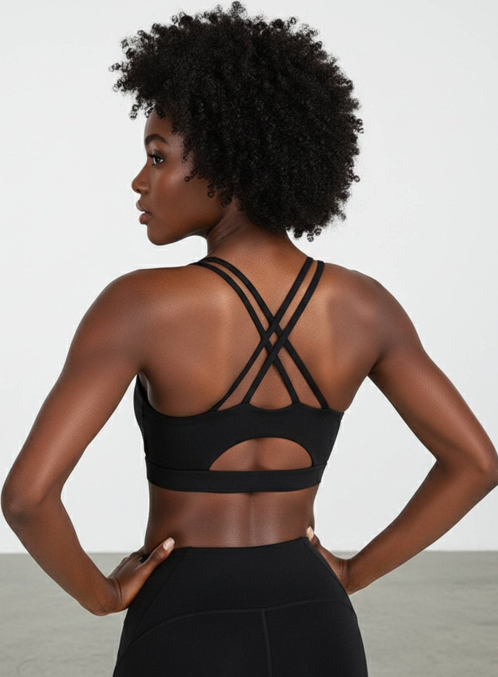 - Strappy Crossback Design – stylish criss-cross straps provide secure fit and breathable comfort.