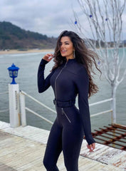 Upgrade your sportswear with our long sleeve pocket jumpsuit. Soft fabric, long sleeves, and pockets make it a comfortable and functional choice. The relaxed fit ensures maximum comfort during your workout.