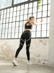 Our Midnight Monochrome Legging is the perfect addition to your activewear collection. Designed with a fitted silhouette, these leggings hug your curves for a flattering and comfortable fit. Made with breathable high-performance interlock fabric and high compression, they provide maximum coverage while keeping you cool and dry during your workout.