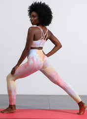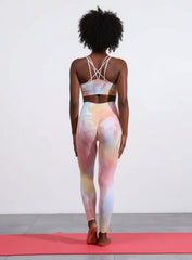 Crafted with four-way stretch fabric and seamless knitting technology, this full set provides body-contouring support, flexibility, and a flattering fit. The tie-dye gradient pattern adds a stylish, eye-catching finish, while the quick-drying and breathable fabric ensures freshness during high-intensity training, yoga, running, or daily activities.
